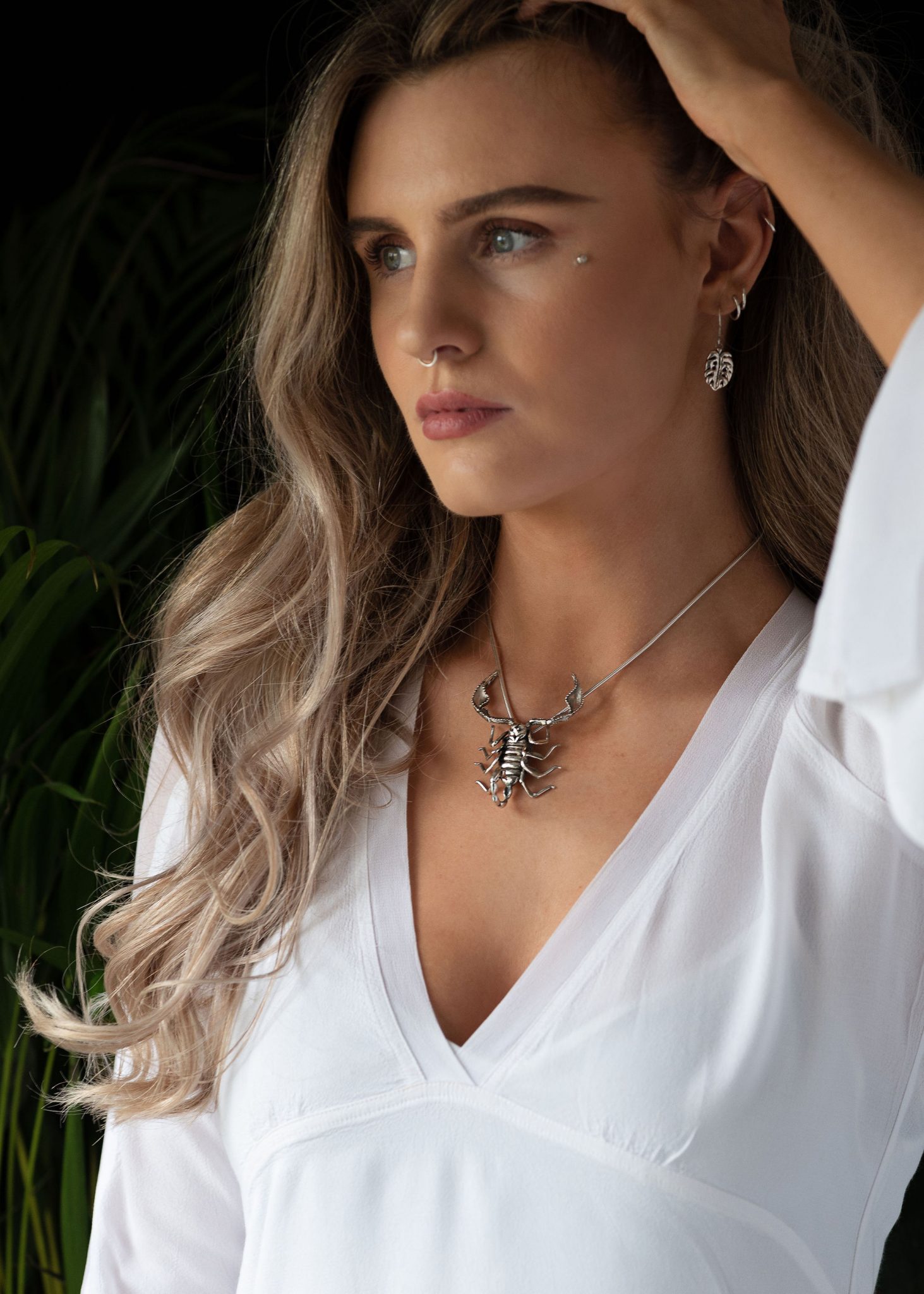 Praying Mantis Necklace, with Common Frog Earrings, Stag Beetle and Frog & Lilypad Rings