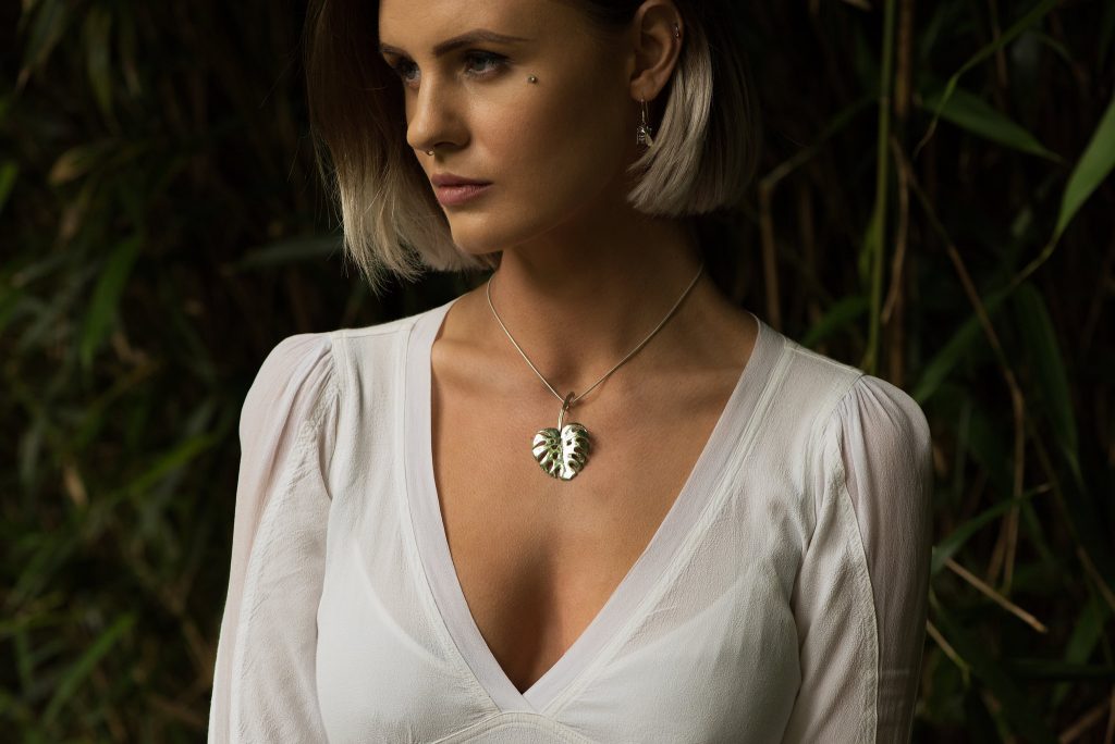 Red-Eyed Tree Frog & Monstera Leaf Necklace (large)