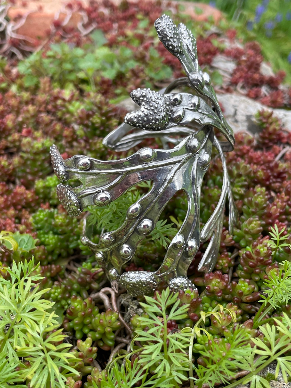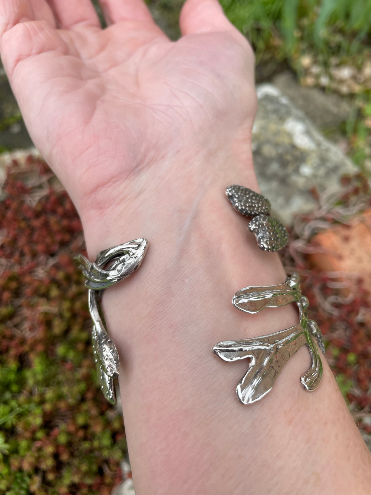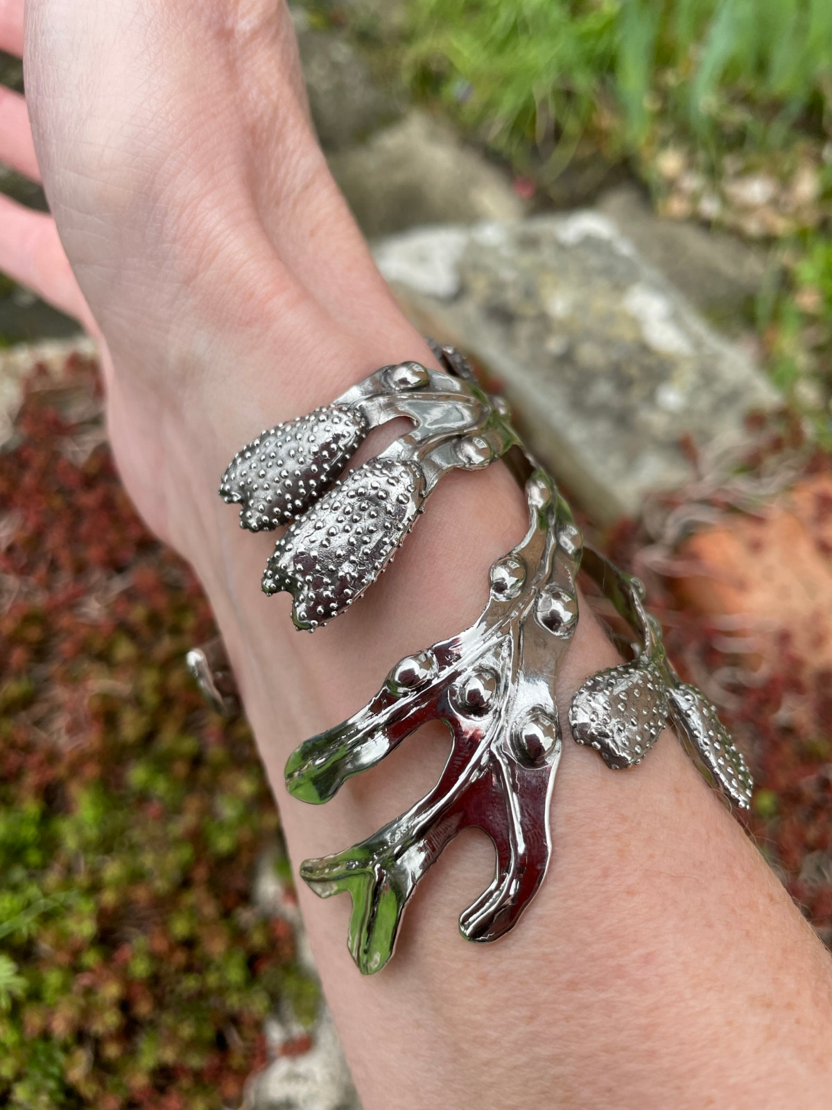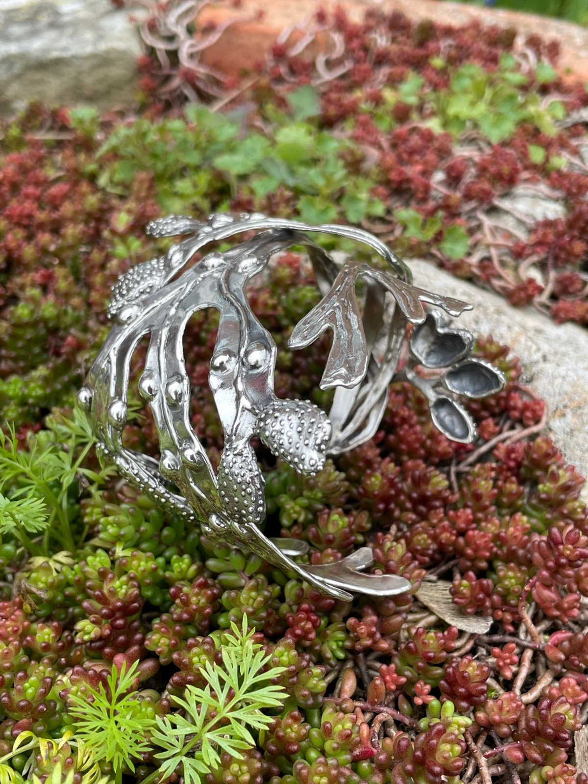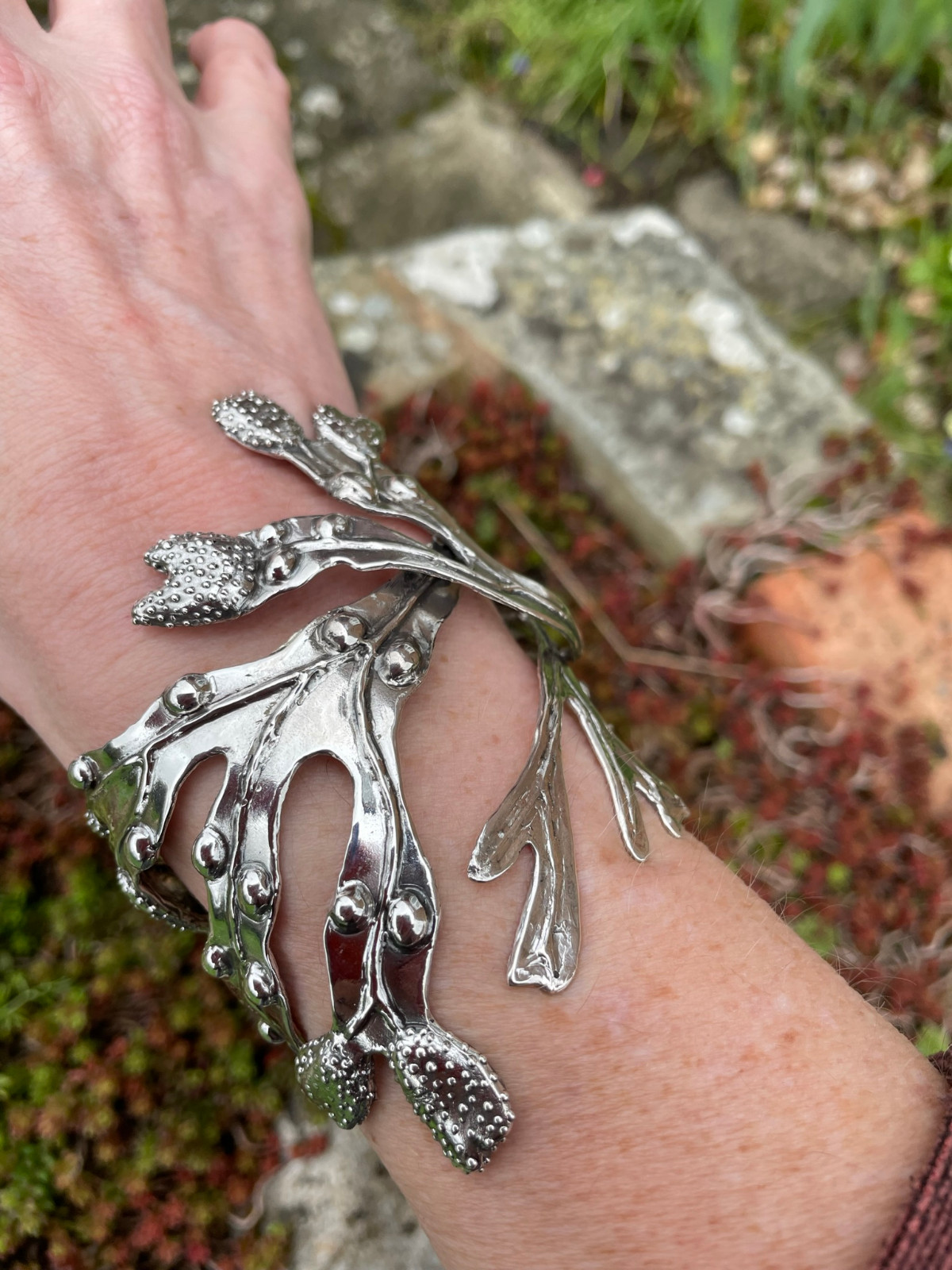 Why a bladderwrack cuff? It’s nature’s bubblewrap! Like bubblewrap, it is entices you to try to pop the bladders… although the slimy texture is not quite so endearing. I’ve always been fascinated with it. And now that I live close to the sea, that fascination has only grown. In terms of a plant that was made to be modelled in silver, I can’t think of a better candidate.