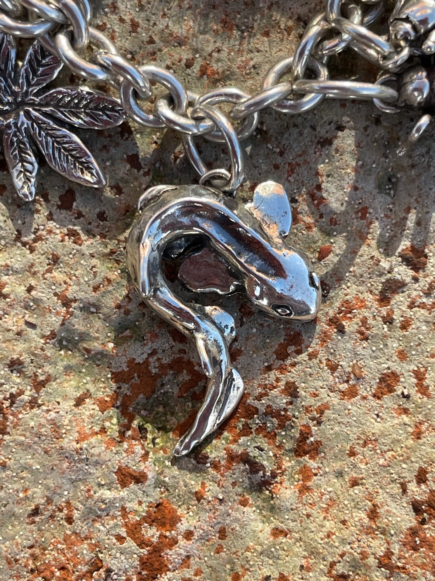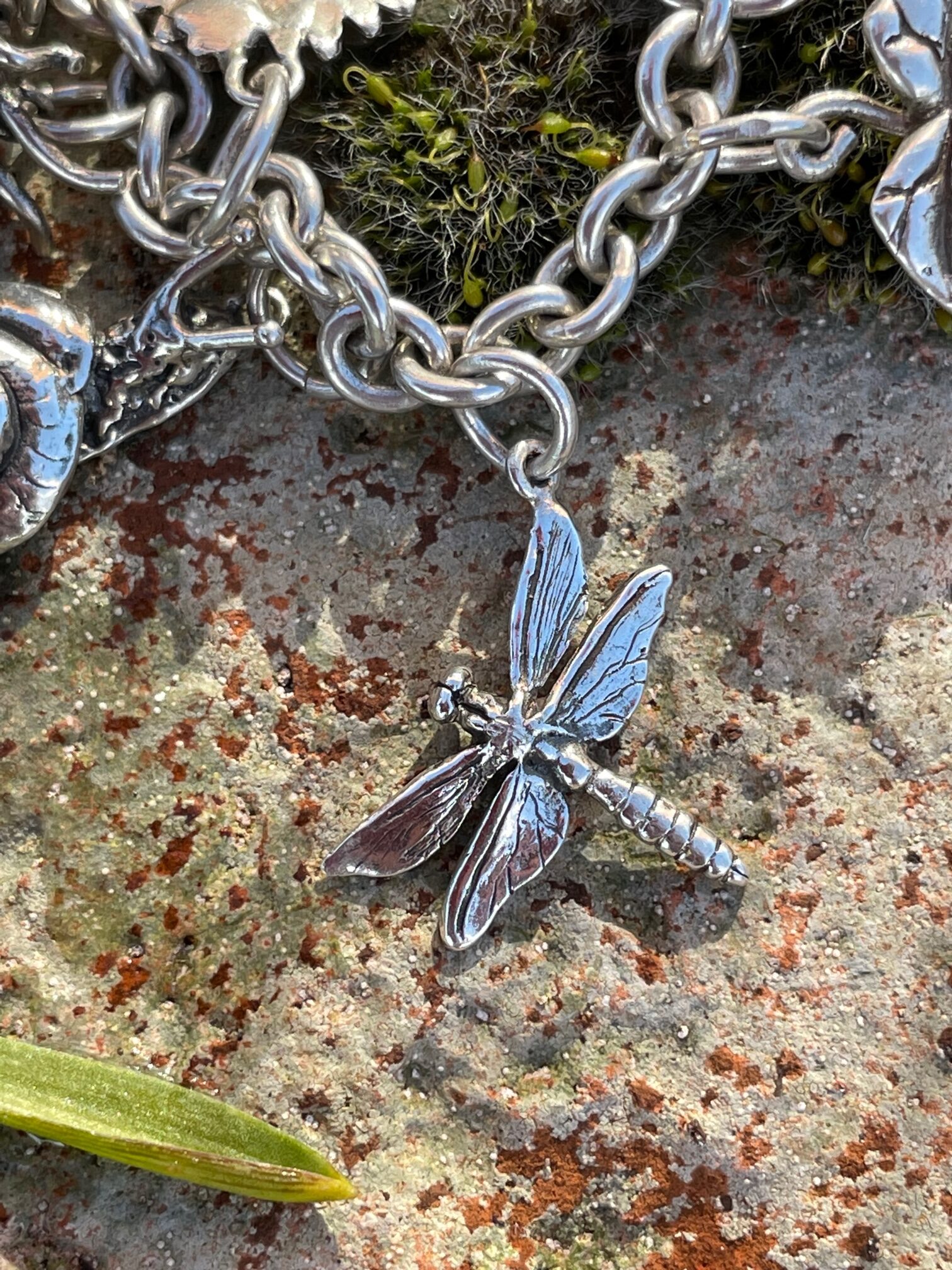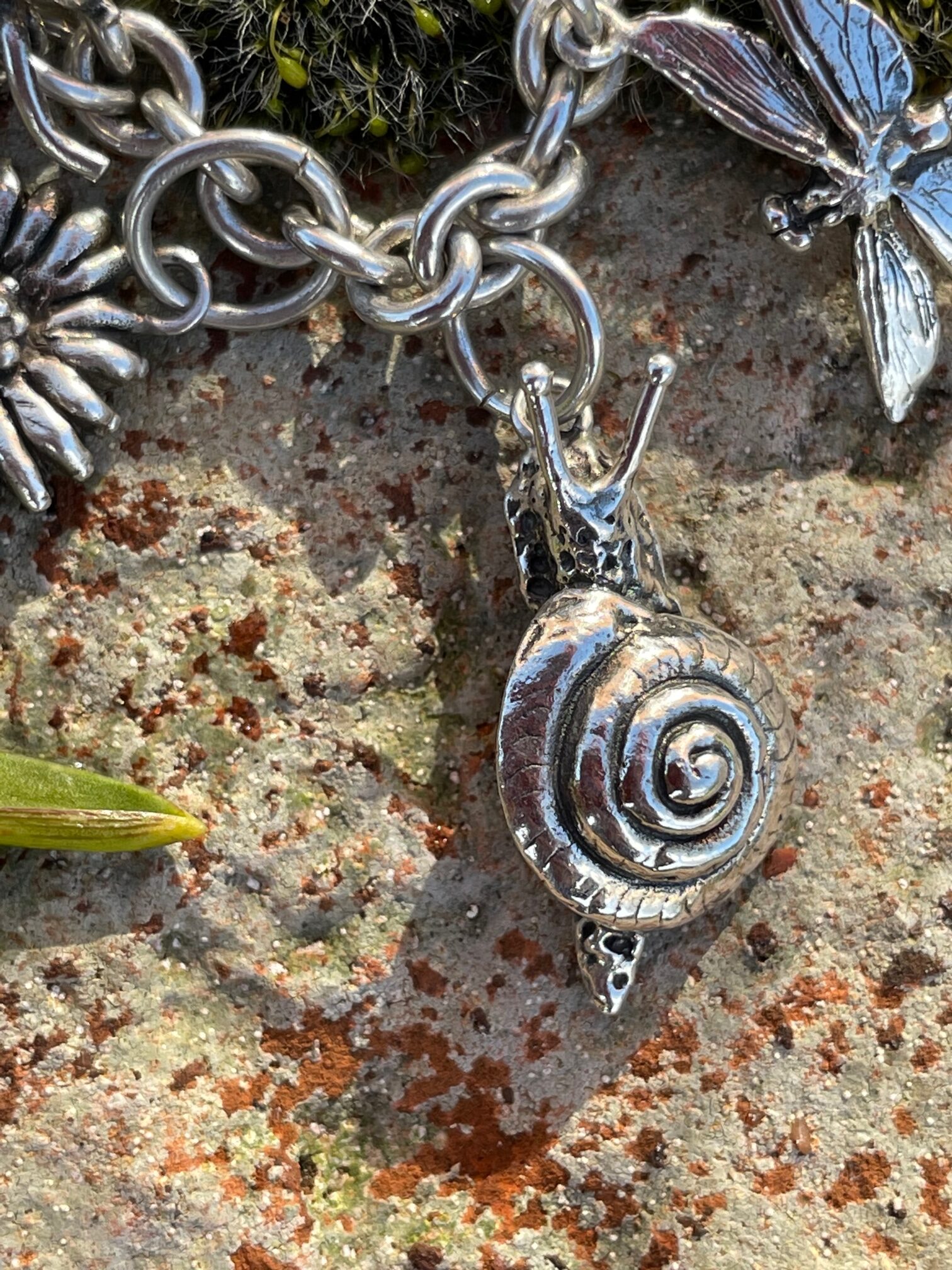The bracelet itself is made from a robust cable chain, with a little bumblebee attached holding the hallmark and is secured with a fine safety chain (see separate listing for Charm Bracelet). Currently the choice of bracelet charms includes: bumblebee, daisy, earwig, ivy leaf, shieldbug, horse chestnut leaf, green sea turtle, tree frog, monstera leaf, ladybird, moon moth, dragonfly, fly (aka dinner), woodlouse (open and closed), moon moth, spider, slug, snail, scorpion, baby shark and frog on lilypad. But the list is growing all of the time. They can be purchased together or collected over a period of time, in the old tradition of charm bracelets.