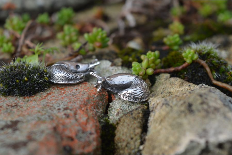 Garden Slug Earrings! A very good customer of mine approached before Christmas 2020 and asked could she commission a pair of Garden Slugs for her daughter who loves all kinds of creepy crawlies. In fact, she has an Instagram page called “The Slug and Snail Appreciation Society”. You should check it out – they really are quite endearing! This was not the usual type of request I receive, although I have been asked recently to do some Woodlouse earrings, so perhaps this is a trend. The common Black Slug, Arion Ater, has a lovely mix of textures which work great in oxidised silver.