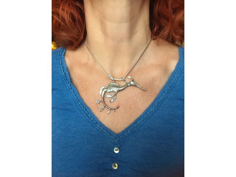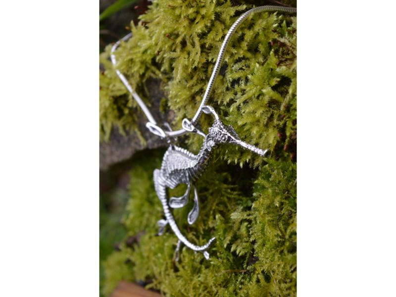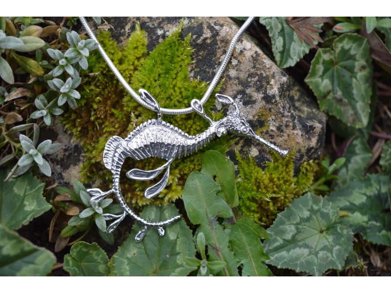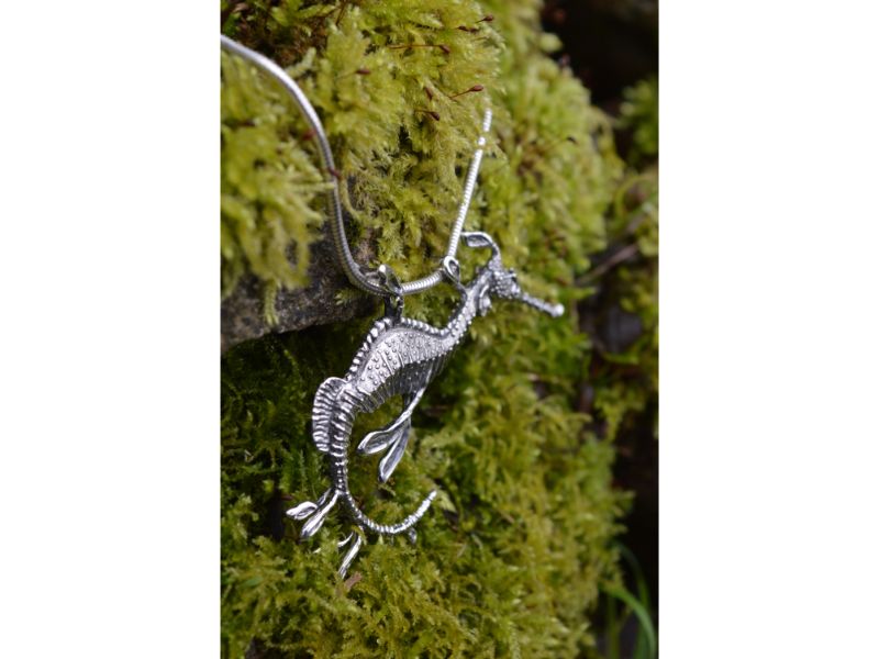 Since the moment that I learned to wax model, I have had a long list of sea creatures that I felt belonged in my collection. Seahorses were, of course, amongst them. However, due to their obvious charisma and the possibility of making a cast directly from a seahorse’s dried body (which is not a technique I use) – they have always been very well represented in jewellery. And so, me being me, I’ve avoided them! My limited knowledge of sealife meant that a weedy seadragon pendant was not on my list. But researching seahorses for a commission lead me to this marvellous creature – and I admit I spent quite a bit of “research time” watching videos of them gracefully dancing in the seas or tumbling in the current like seaweed.