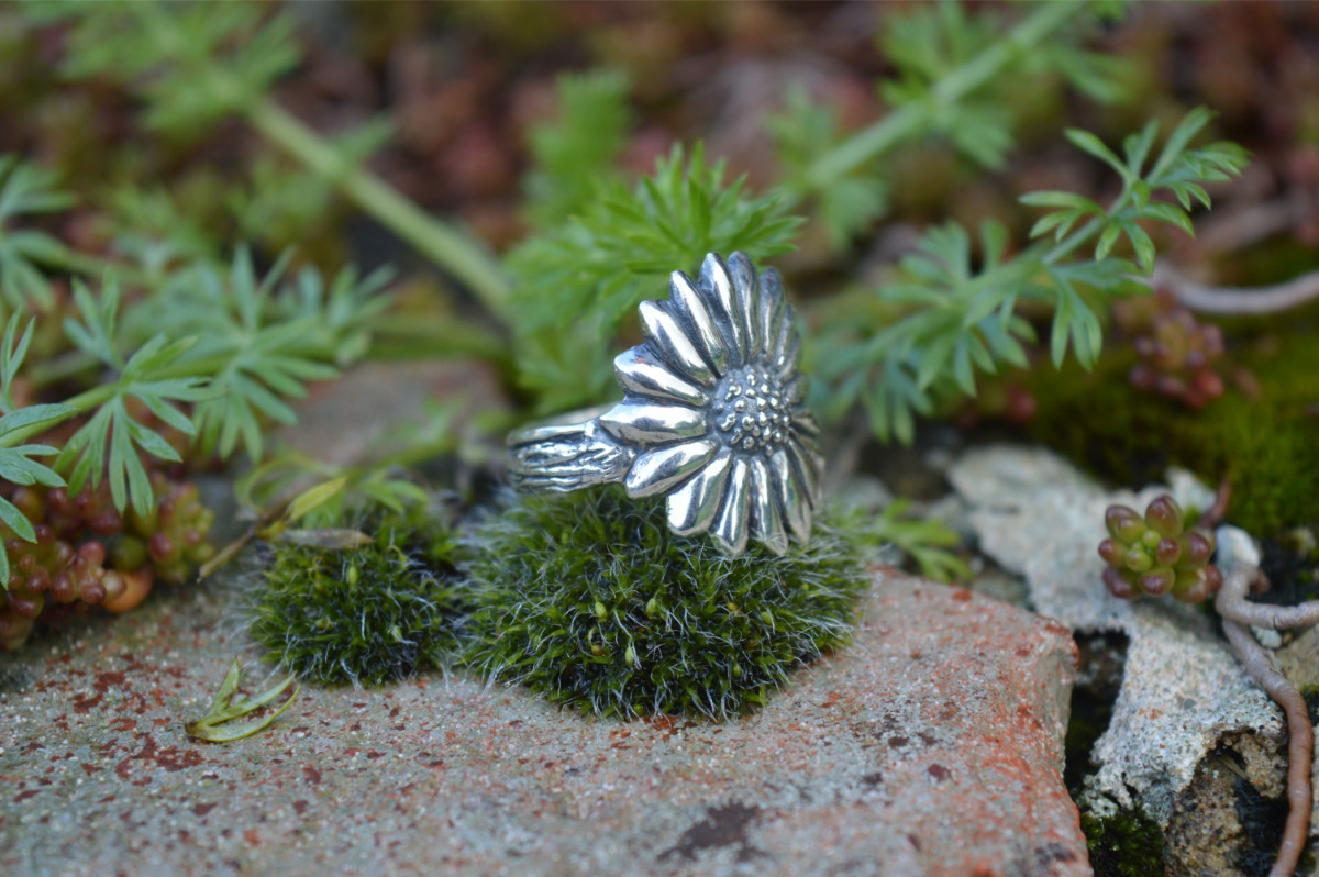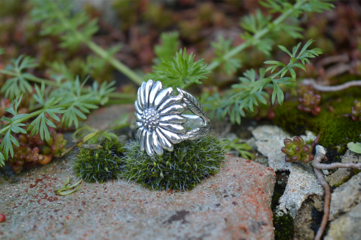 I am very fortunate to have a mature cottage garden, full of flowers of all types. When designing my bumblebee ring, the image that kept popping into my mind was of the bees buzzing in and out of the oxeye daisies in my garden. And so they naturally came into my collection, initially by way of the bumblebee and daisy ring. It has been a popular marriage so my collection now also includes a range of small and large bees and daisies.