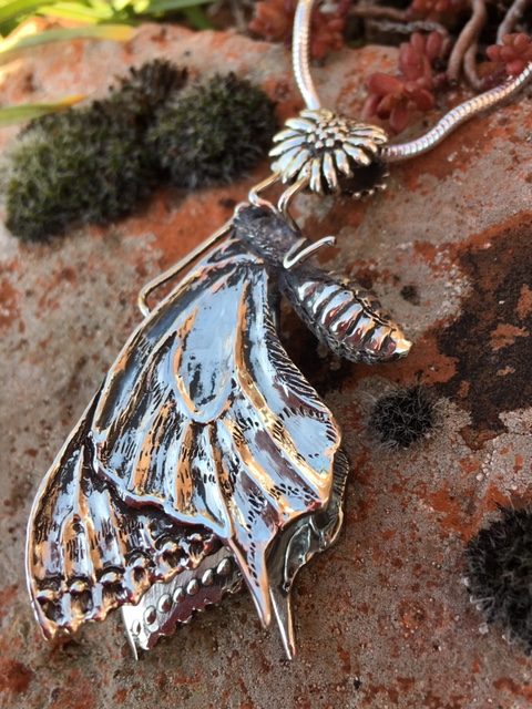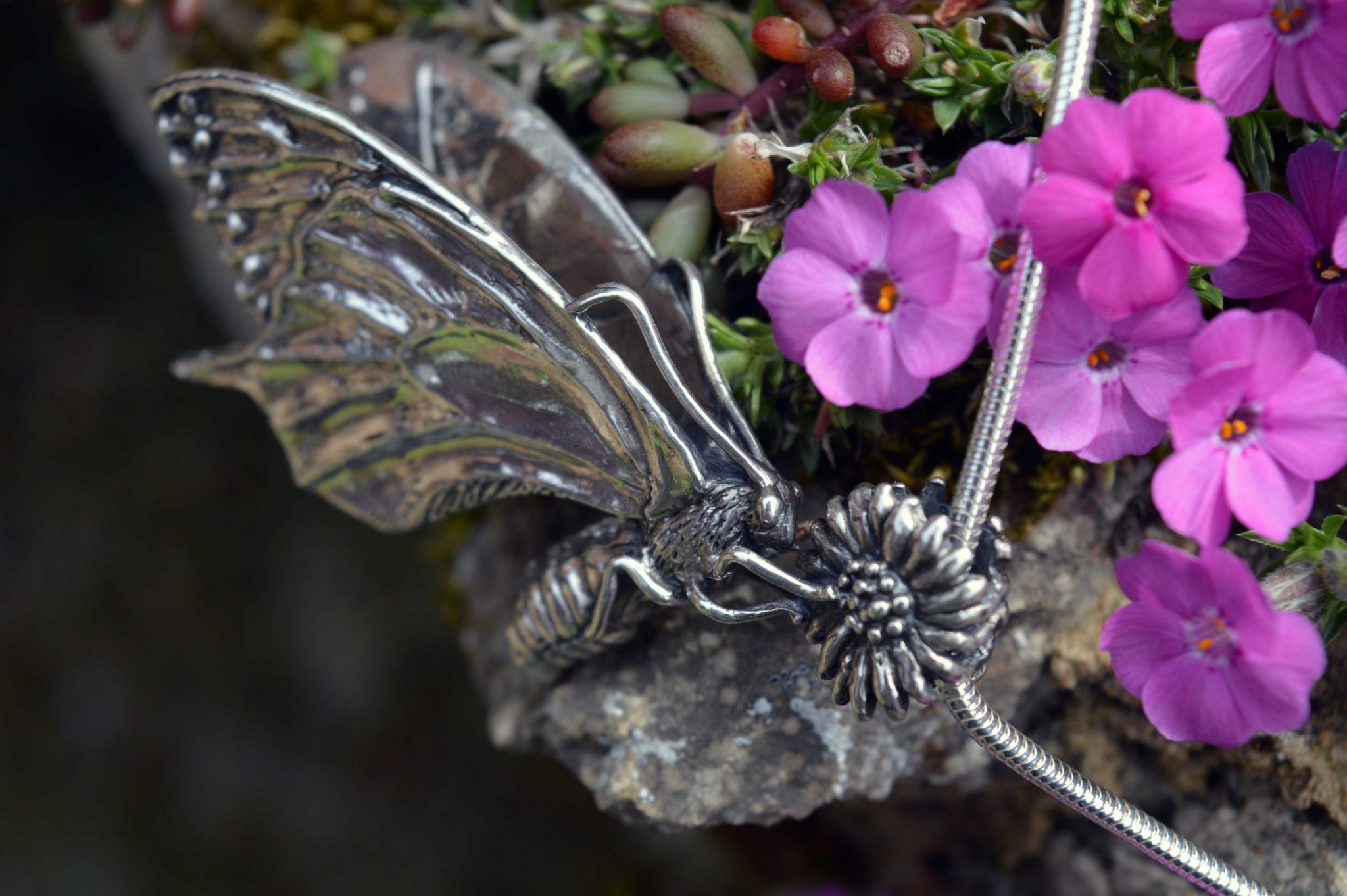 With a Madagascan Moon Moth under my belt, was it any great leap into the world of butterflies? Well, yes. There was a very practical reason why a silversmith jeweller might steer clear of butterflies. How would the kaleidoscope of colours translate into monochrome? Were it not for the elegance of the Swallowtail’s wing tips and the dramatic markings, my collection might have forever remained ‘butterfly-less’.