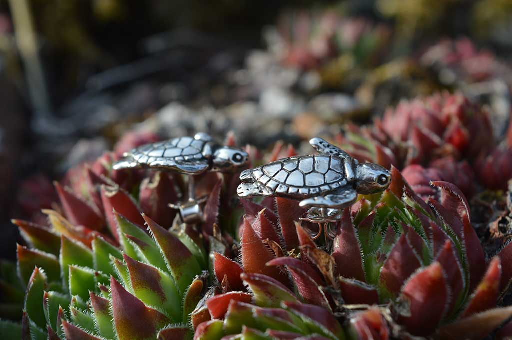 This Green Sea Turtle Lapel Pin was originally modelled as a a set of earrings to match my large Turtle Pendant – commissioned to commemorate a 20th wedding anniversary. For this couple, the “serene, yet stately” sea turtle held a special place in their hearts, bringing back memories of happy holidays and inspiring experiences. Here is it in their own words: